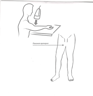 MODE 1: position the radiating unit around cubital fossa (as a rule of the left arm, put palm upside on a support – table, stand, etc.) and press to skin. It is also possible to position the radiating unit at large arteries: in shoulder, inguinal, epigastric areas. If the radiating unit is pressed to the target surface with force up to 3 kg/sq.m the impact depth shall be increased by 2-3 times.